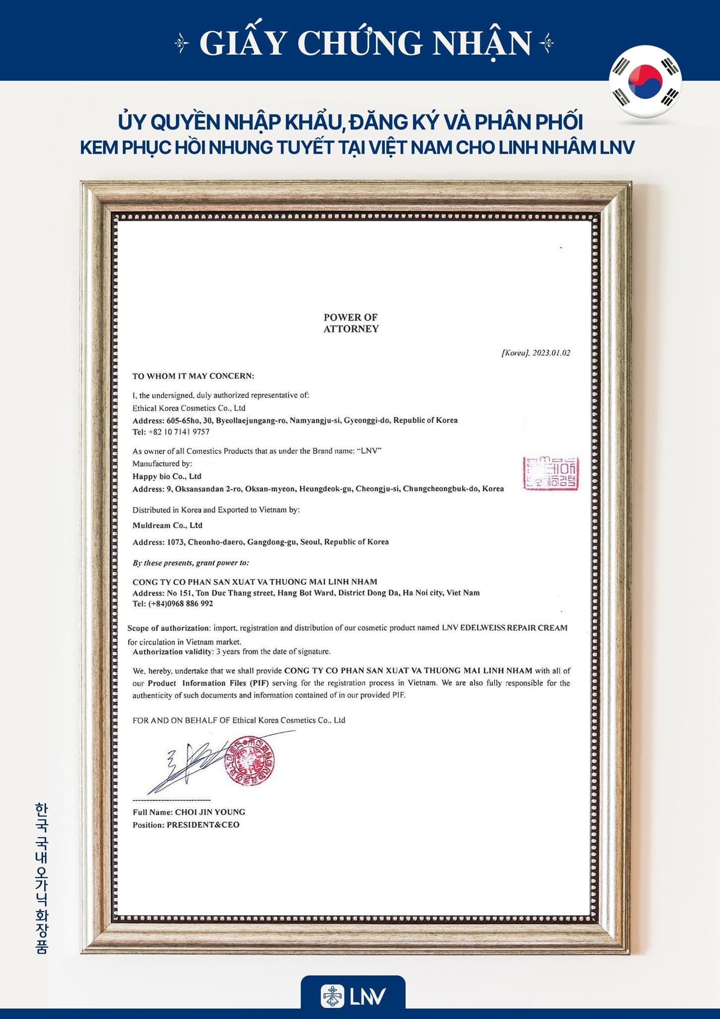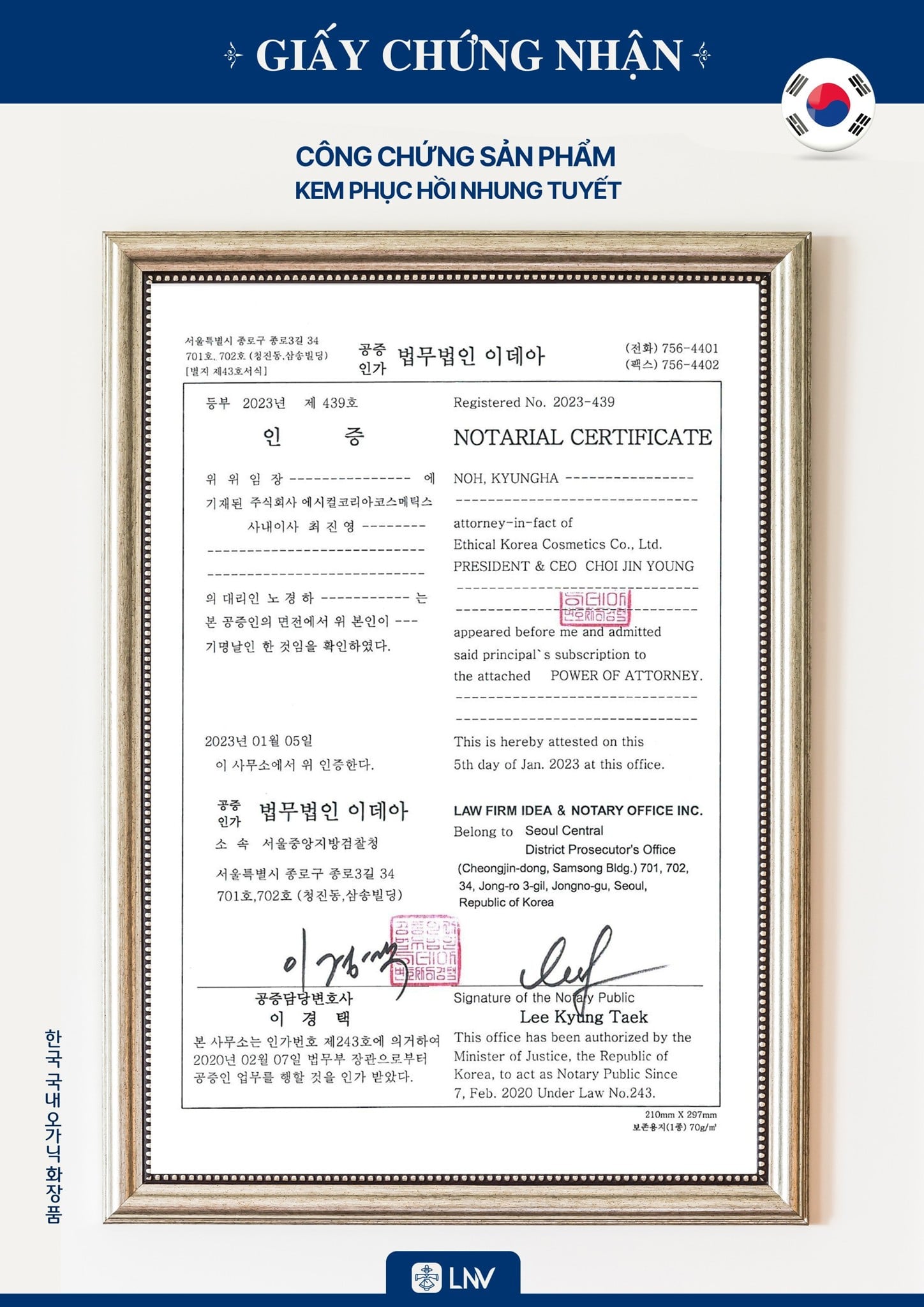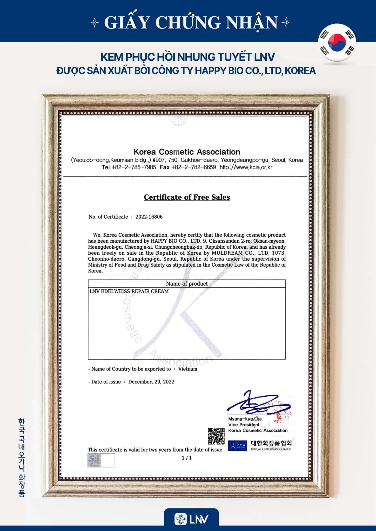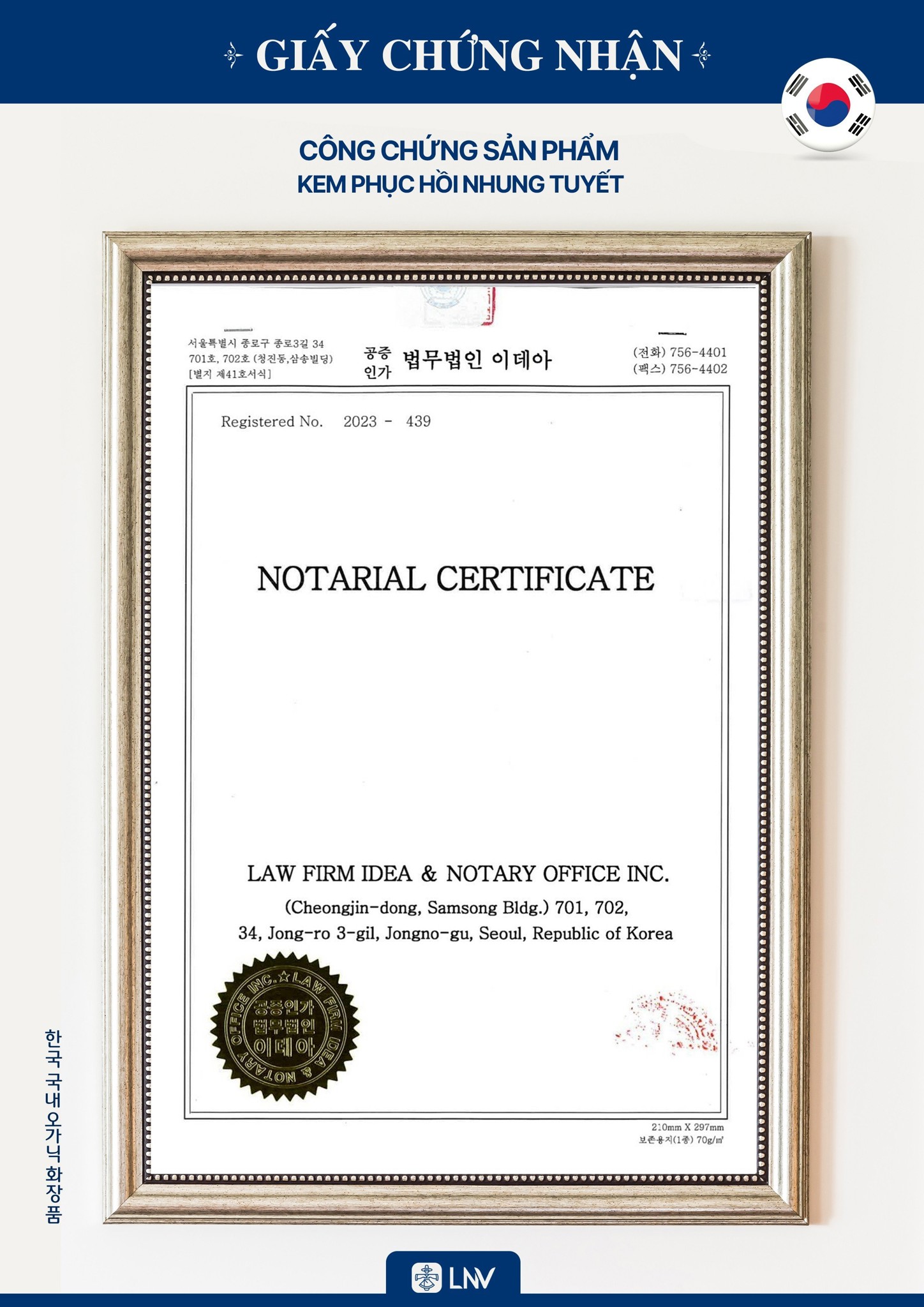 Kem phục hồi Nhung Tuyết LNV được sản xuất trên dây chuyền công nghệ hiện đại tại nhà máy đạt tiêu chuẩn CGMP tại Hàn Quốc. Sản phẩm được nghiên cứu và phát triển với sự tham gia của đội ngũ chuyên gia trong lĩnh vực da liễu và mỹ phẩm tại Hàn Quốc.